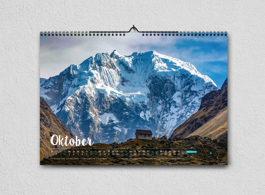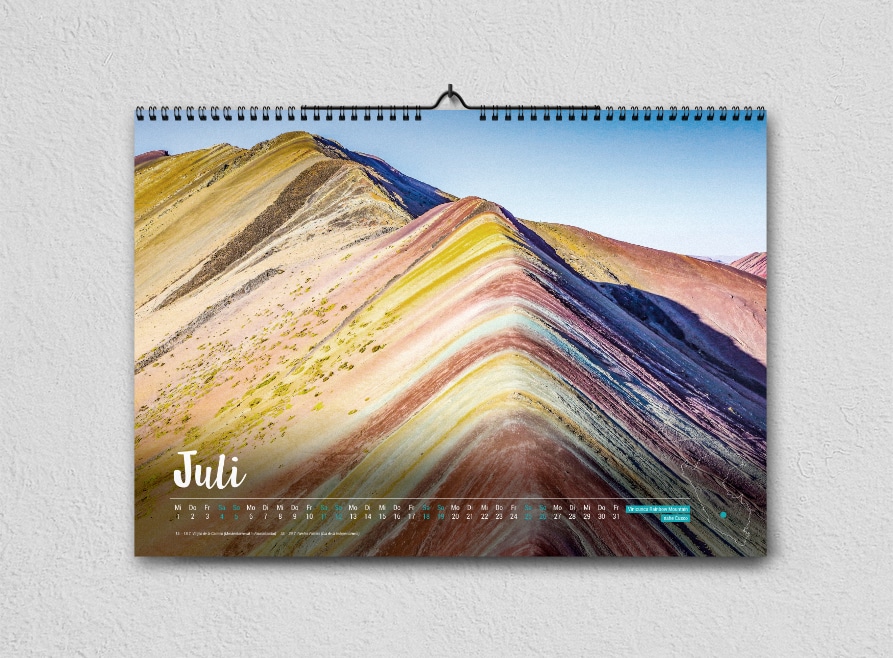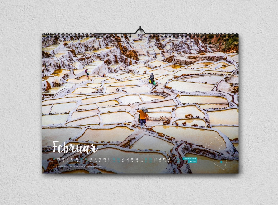 Hole dir mit dem Peru-Kalender 2026 atemberaubende Aufnahmen aus den verschiedensten Regionen des Landes nach Hause – von weltbekannten Highlights bis hin zu echten Geheimtipps. Monat für Monat tauchst du in die Schönheit Perus ein und kannst dich auf deine nächste Reise einstimmen. Der Kalender ist in limitierter Auflage erhältlich, wahlweise in A4 oder A3.